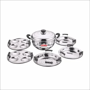 Kitchen Essential Stainless Steel Multi Kadai (28cm) features an induction-friendly base and comes with 6 versatile plates for idli, mini idli, dhokla, patra, momos, and modak—ideal for steaming and multi-purpose cooking.