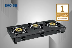 The Kutchina EVO 3 Burner Gas Stove combines modern design, high performance, and lasting durability. Equipped with three high-efficiency brass burners, a stylish toughened glass top, sturdy pan supports, and smooth control knobs — it ensures safe, quick, and convenient cooking for every Indian kitchen.