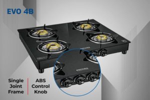 The Kutchina EVO 4 Burner Gas Stove is a premium cooktop designed for style, performance, and convenience. With four high-efficiency brass burners, a sleek toughened glass top, and sturdy pan supports, it ensures faster, even cooking for large families. Its ergonomic knobs and anti-skid feet make every cooking experience safe, smooth, and effortless.