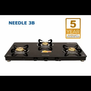 Upgrade your kitchen with the Kutchina Needle 3 Burner Gas Stove, featuring a premium 6mm toughened glass top, high-efficiency brass burners, and auto ignition for effortless cooking. Built with a durable MS body and backed by a 5-year warranty, it delivers safety, style, and performance every day.