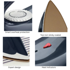 Get crisp, wrinkle-free clothes effortlessly with the Kenstar Ferro Neo Heavy Weight Iron. Powered by a 1000W heating element and equipped with Golden Non-Stick Technology, it ensures smooth glide, even heating, and efficient ironing across all fabrics.