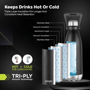 Stay refreshed anytime with the Pexpo Electro 750 Hot & Cold Water Bottle. Crafted from premium stainless steel, it keeps beverages hot or cold for hours. Its leak-proof design, sleek finish, and easy-to-carry size make it perfect for home, office, travel, or gym use.