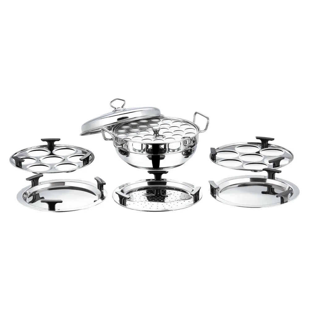 The set comes with multiple accessories such as idli plates, dhokla plates, and steamer trays, allowing you to prepare a wide range of Indian delicacies effortlessly. Its mirror-polished finish adds elegance to your kitchen, while the sturdy, heat-resistant handles provide a comfortable and safe grip.